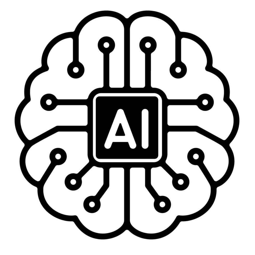 AI Brain Icon with Microchip. Artificial Intelligence Concept Illustration Pro Vector