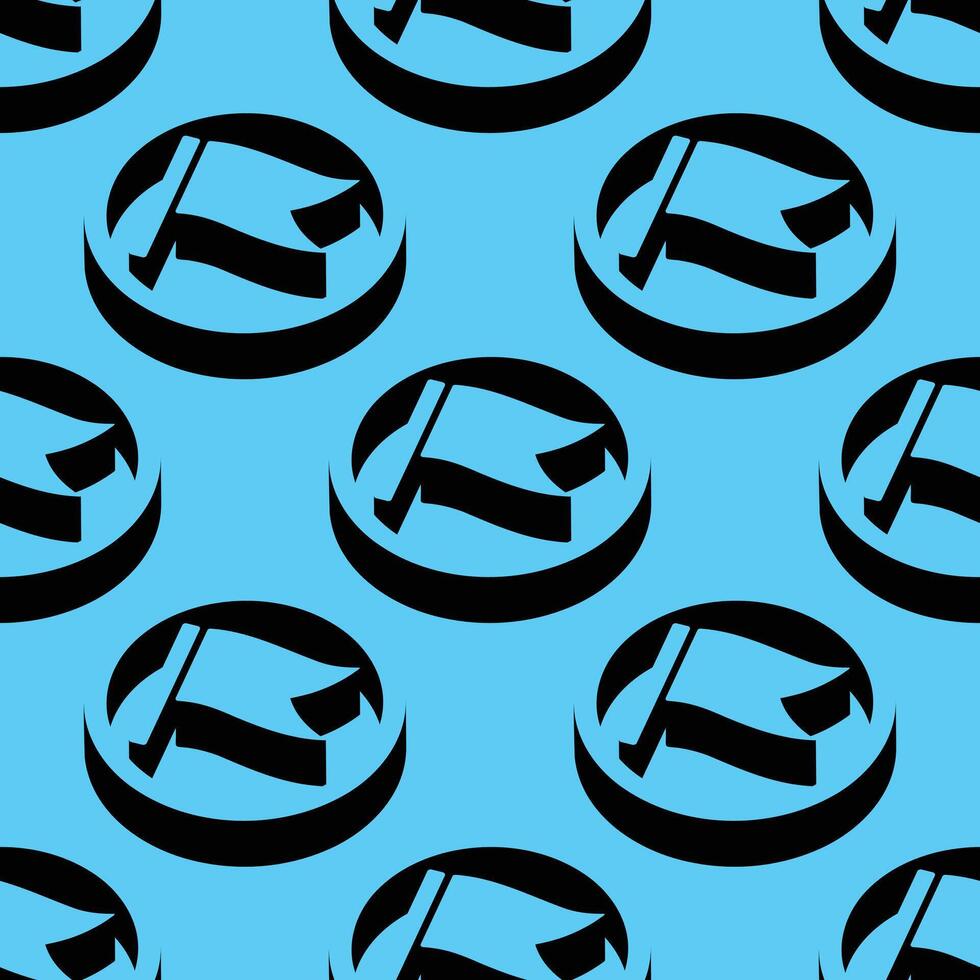 Seamless isometric pattern with waving flag icons in 3D circular shapes, using black on cyan with strong negative space and shadows. Ideal for themes of identity, movement, or politics. Pro Vector