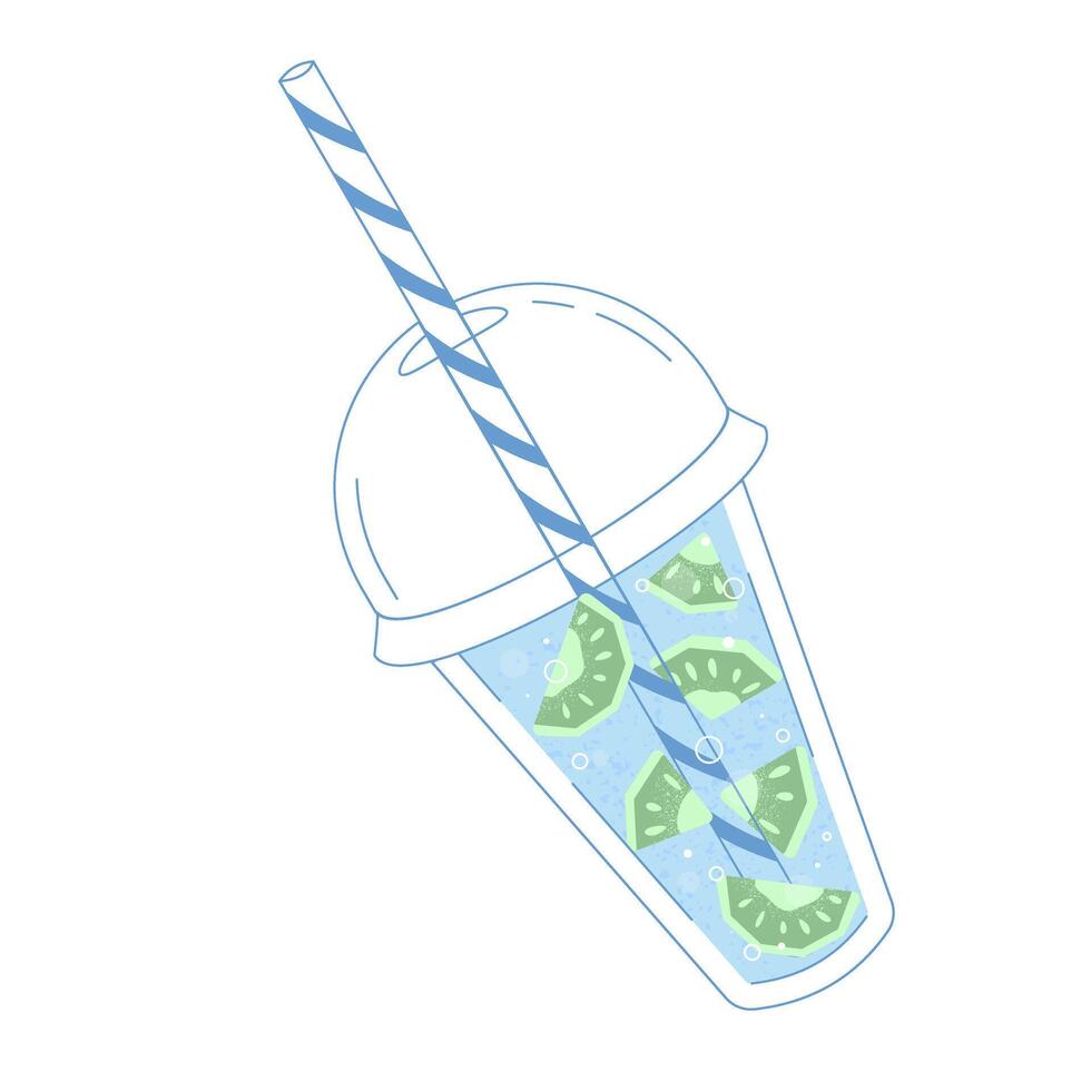 Infuser Bottle with Straw and kiwi flat outline style with texture Pro Vector