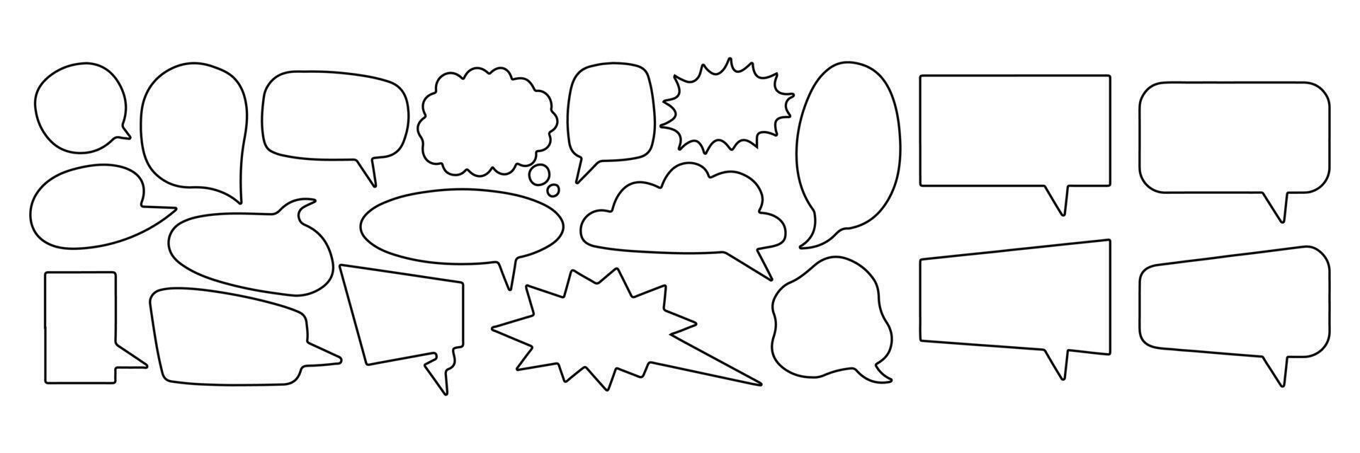 Hand drawn set of speech bubbles in flat style. frames doodle loops on isolated white background, textbox Stickers of speech, design elements. Pro Vector