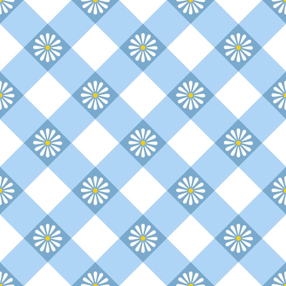 Small daisies arranged in a blue repeating checkered design pattern used in various applications, such as textiles, wallpapers, and digital design. vector
