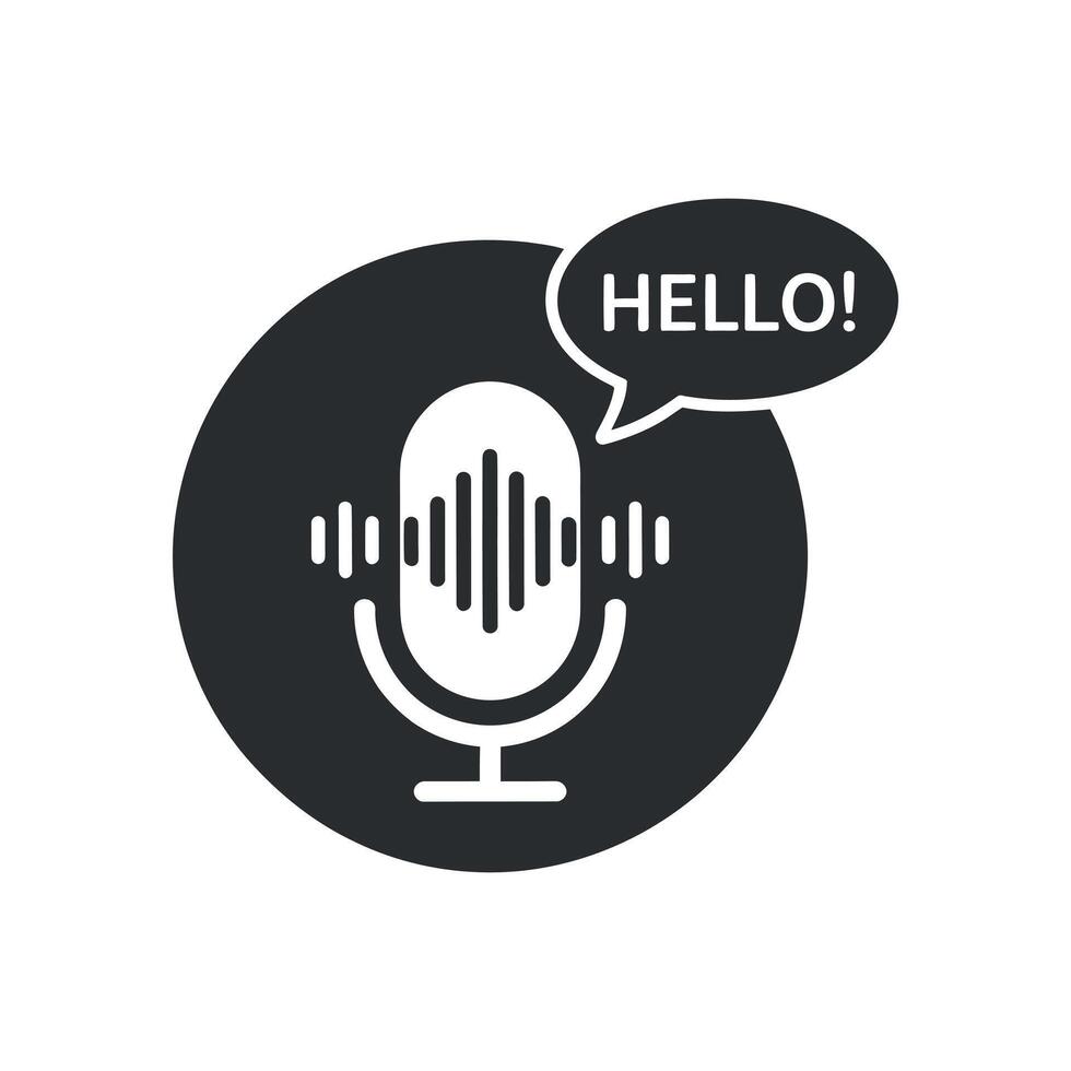 Voice Recognition Technology Icon Design with Microphone and Hello Speech Bubble Pro Vector