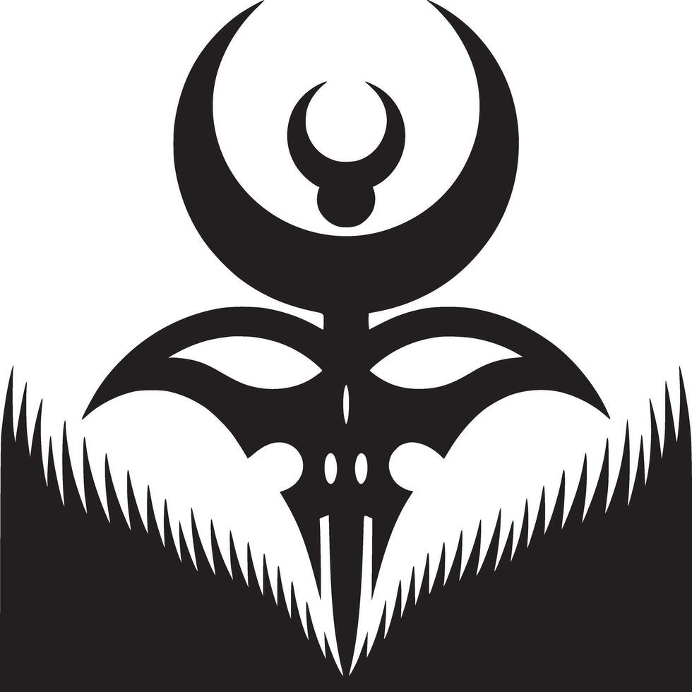 A black and white abstract design featuring crescent moons and sharp jagged edges in a symmetrical pattern Pro Vector