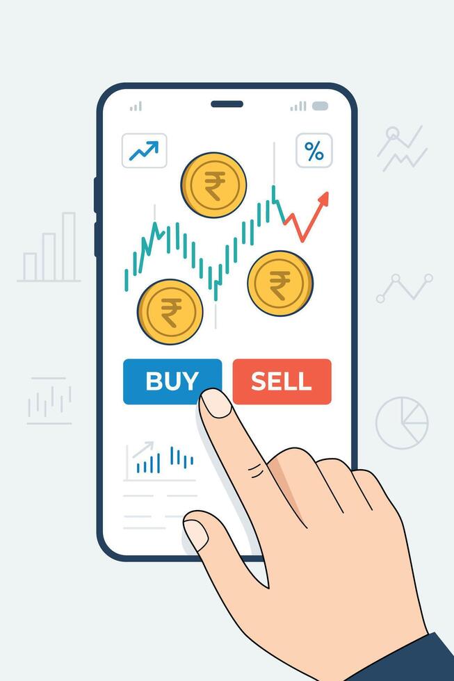 A financial trading app interface displaying a rising trend graph Pro Vector