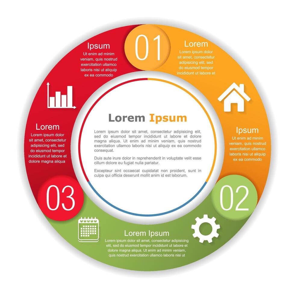 Circle infographics with three elements, steps or options, process diagram, round chart template Pro Vector