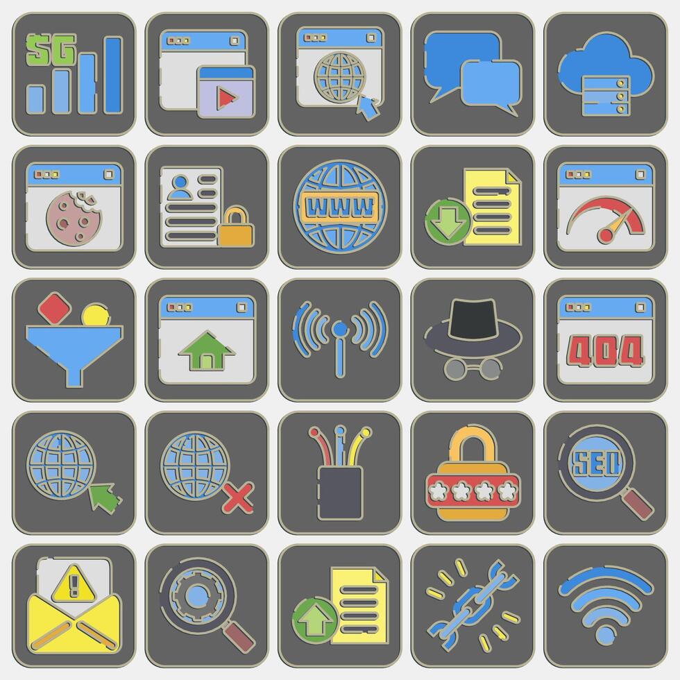 Icon set of internet. Internet network elements. Icon in embossed style. Pro Vector