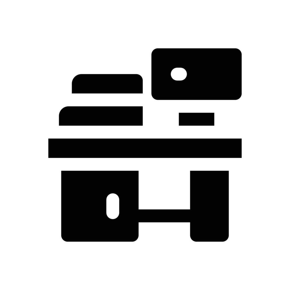 desk glyph icon. Strong and solid icon for websites, mobile interfaces, presentations, and visual branding. High quality and easy to edit. Pro Vector