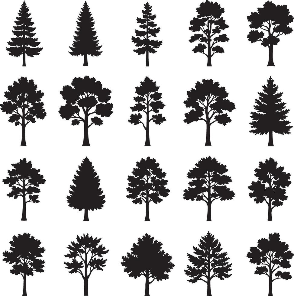 Minimal Silhouette Tree Collection Set of Deciduous, Conifer, and Palm Trees for Architectural and Landscape Projects Pro Vector