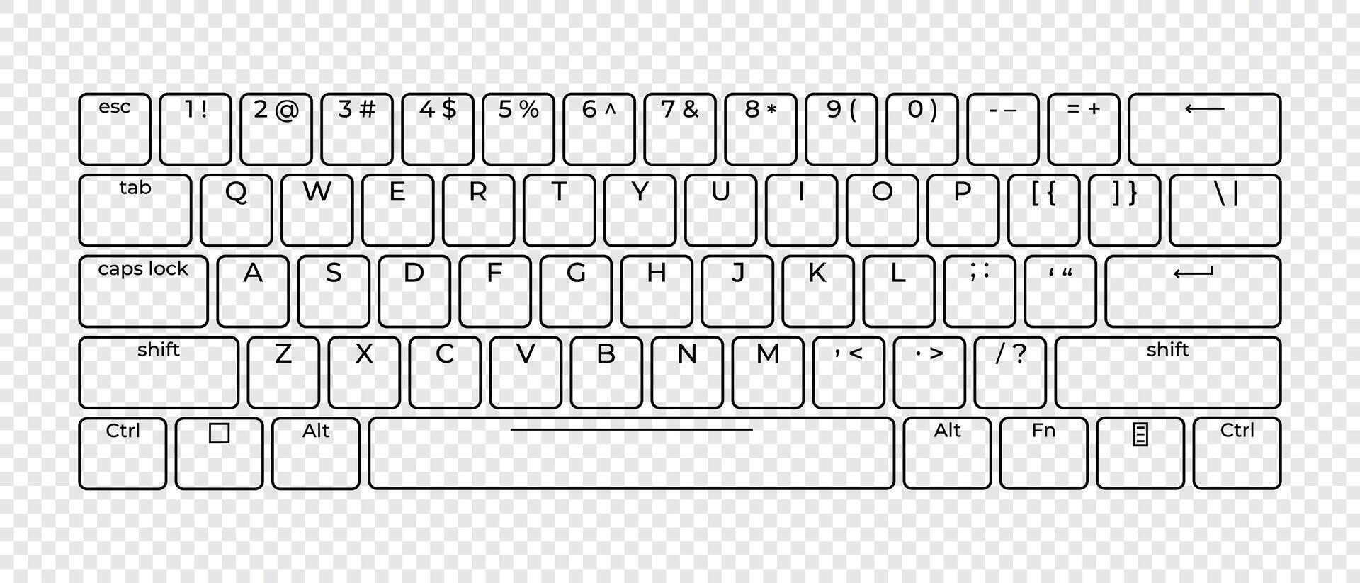 Computer keyboard button layout template with letters. Modern computer keyboard. illustration. Pro Vector