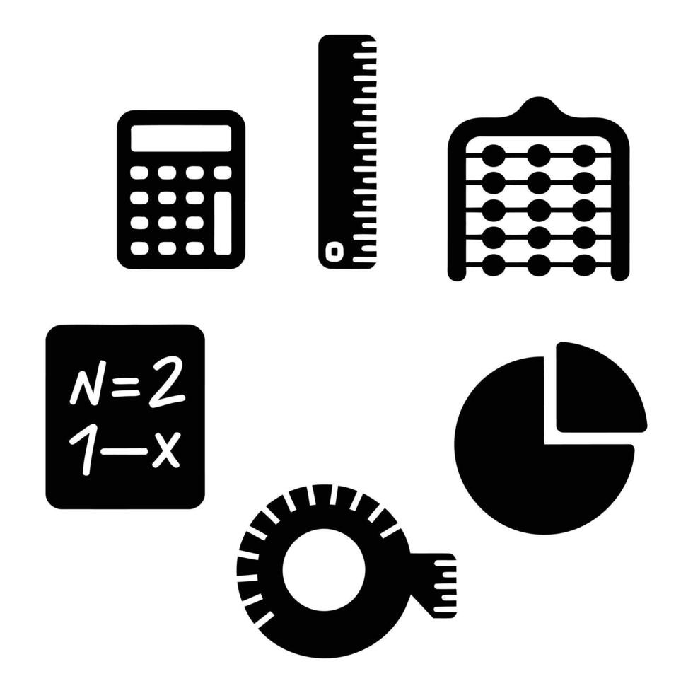 Exploring the world of math with icons of calculator ruler abacus and more in a stark black and Pro Vector