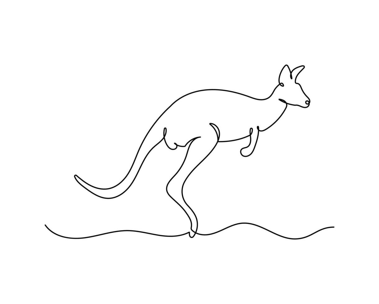 Kangaroo jumping in continuous line art drawing style. Minimalist black linear sketch of animal isolated on white background.. Pro Vector