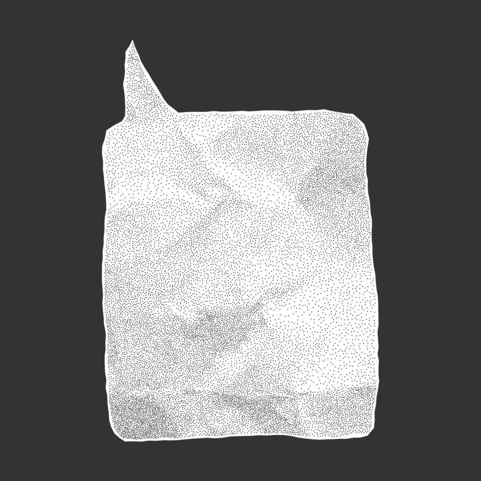 Isolated white speech bubble on dark background. Crumpled paper texture with jagged torn edges gritty dots and halftone overlay. Pro Vector