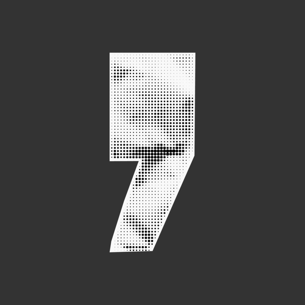 Torn paper comma with gritty halftone shading. Wrinkled notebook texture, stipple collage effect, ransom style cutout, rough edges. Pro Vector