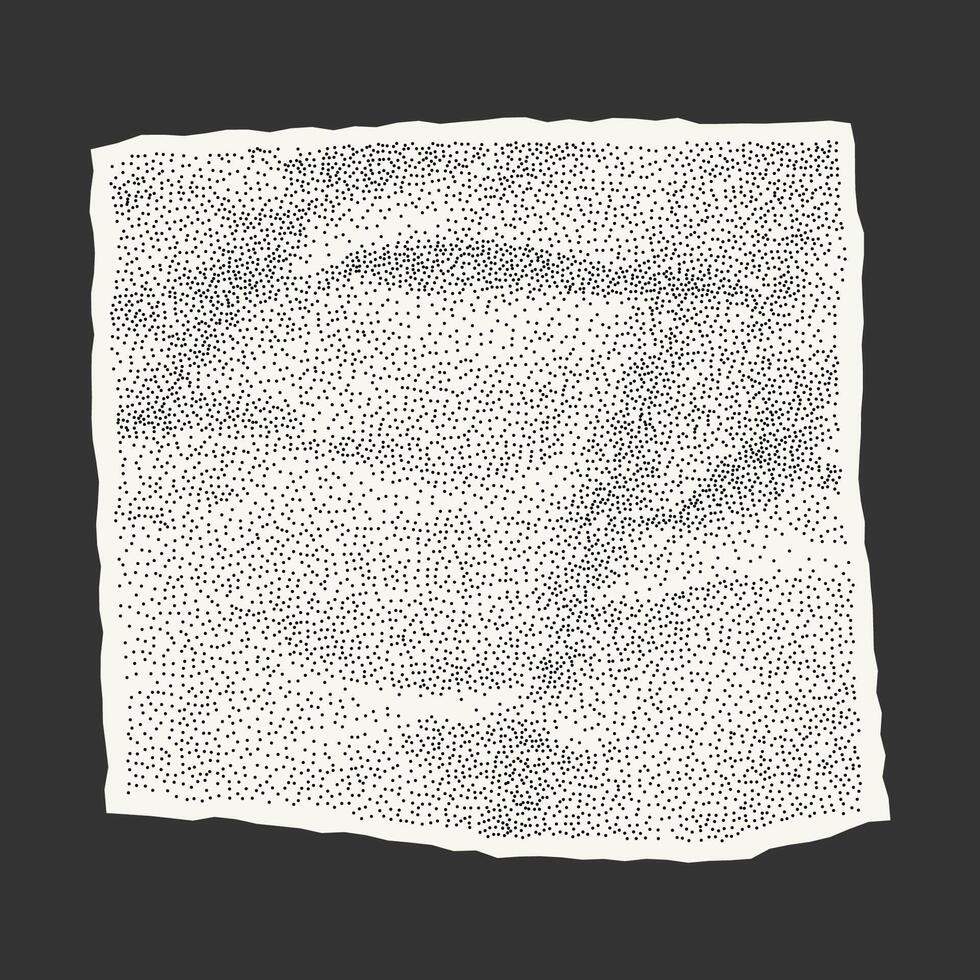 Crumpled uneven rectangle of torn paper. Element with notebook texture, jagged edges and dotted gritty halftone style. Pro Vector