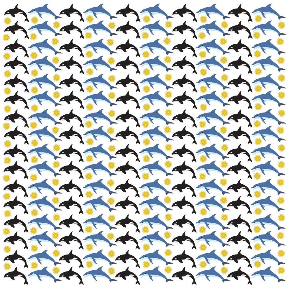 dolphin, orca whale with fruit as a pattern backgrounddolphin, orca whale with fruit as a pattern background Pro Vector