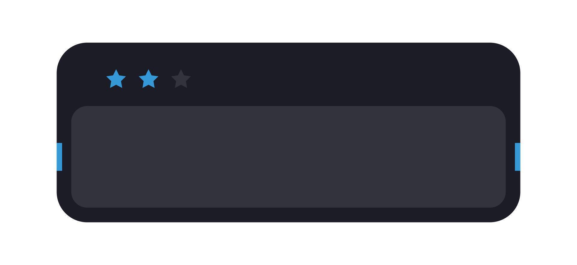 Modern Feedback Module in Dark Theme. Dark UI Rating Panel with Three Blue Stars. Minimal Interface Review Bar with Star Icons. Pro Vector