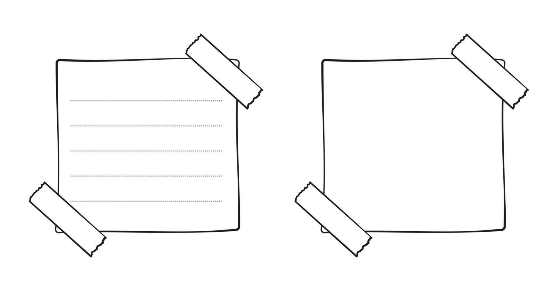 Blank memo paper sheet frame template, sticky note, reminder, to do list, sticky tape. Bullet journal elements in line art doodle style. Pro Vector