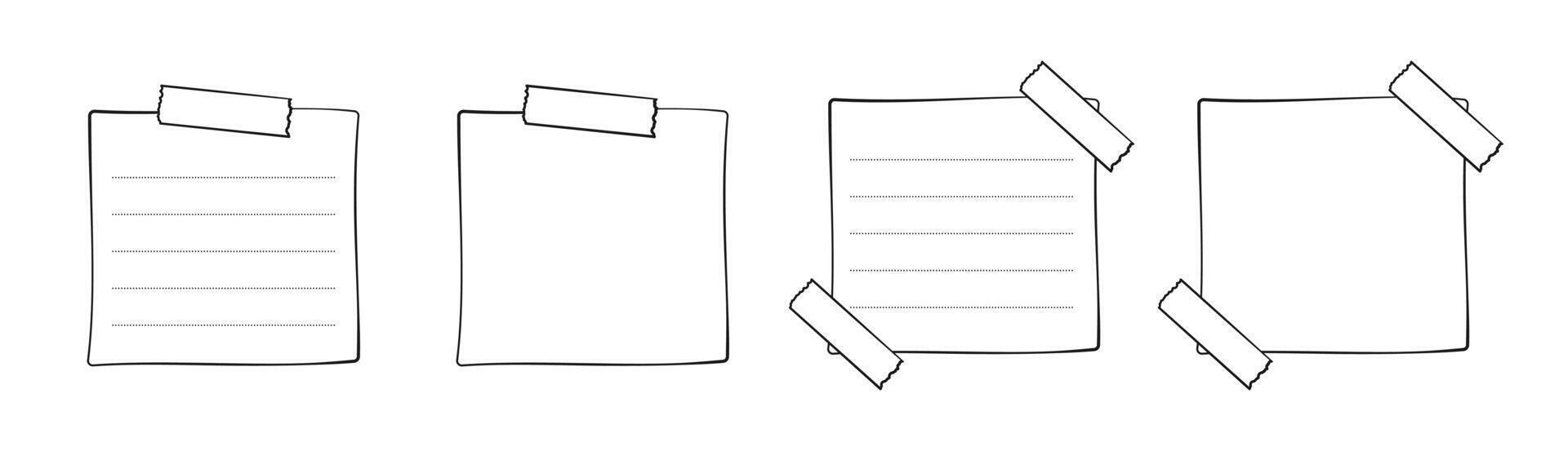Hand drawn memo paper sheet frame template, sticky note, reminder, to do list, sticky tape. Bullet journal elements in line art doodle style. Pro Vector