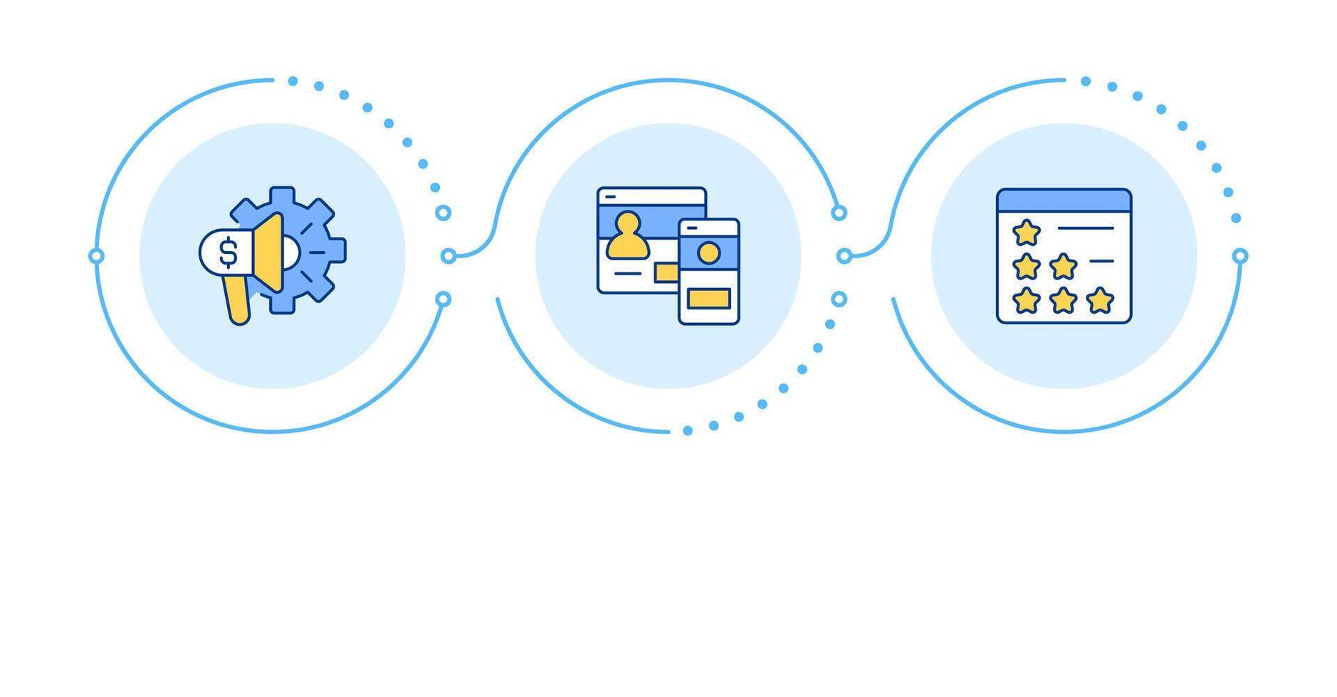 Digital media trifecta infographic 3 steps. PPC management, strategy. Ads personalization.. Flow chart infochart. Editable info graphics icons Pro Vector