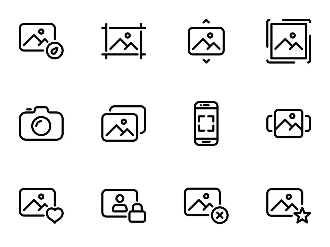 Set of black vector icons, isolated on white background, on theme Photography and social interaction. Restricting access to private data Pro Vector
