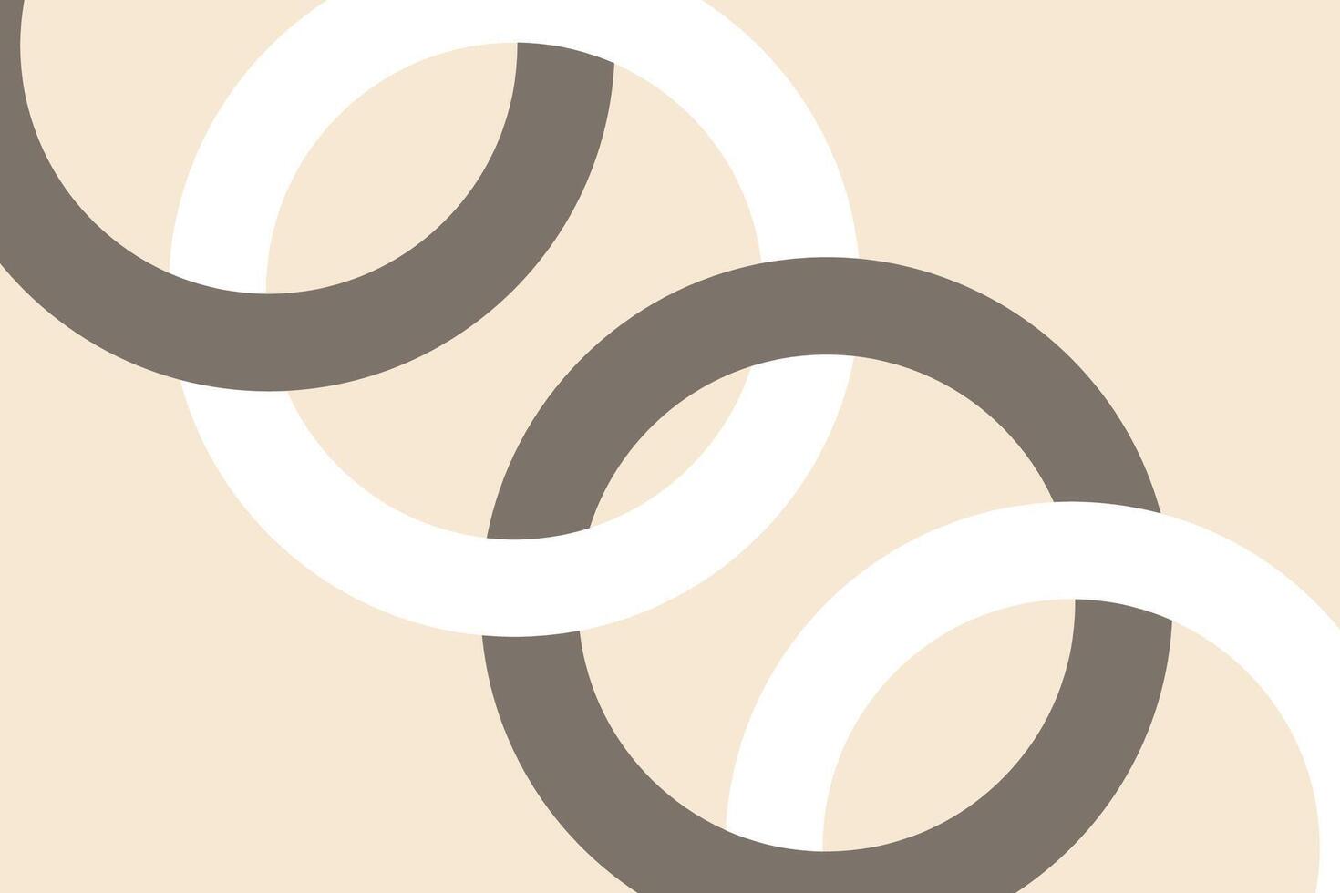 Minimal abstract design with interlocking rings in white and taupe on beige background Pro Vector