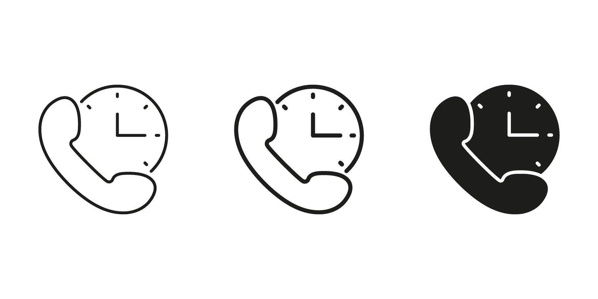 Phone With Clock Line and Solid Icon. Call Scheduling, Time Management, And Communication Planning Symbol. Customer Service And Business Operations. Isolated Illustration Pro Vector