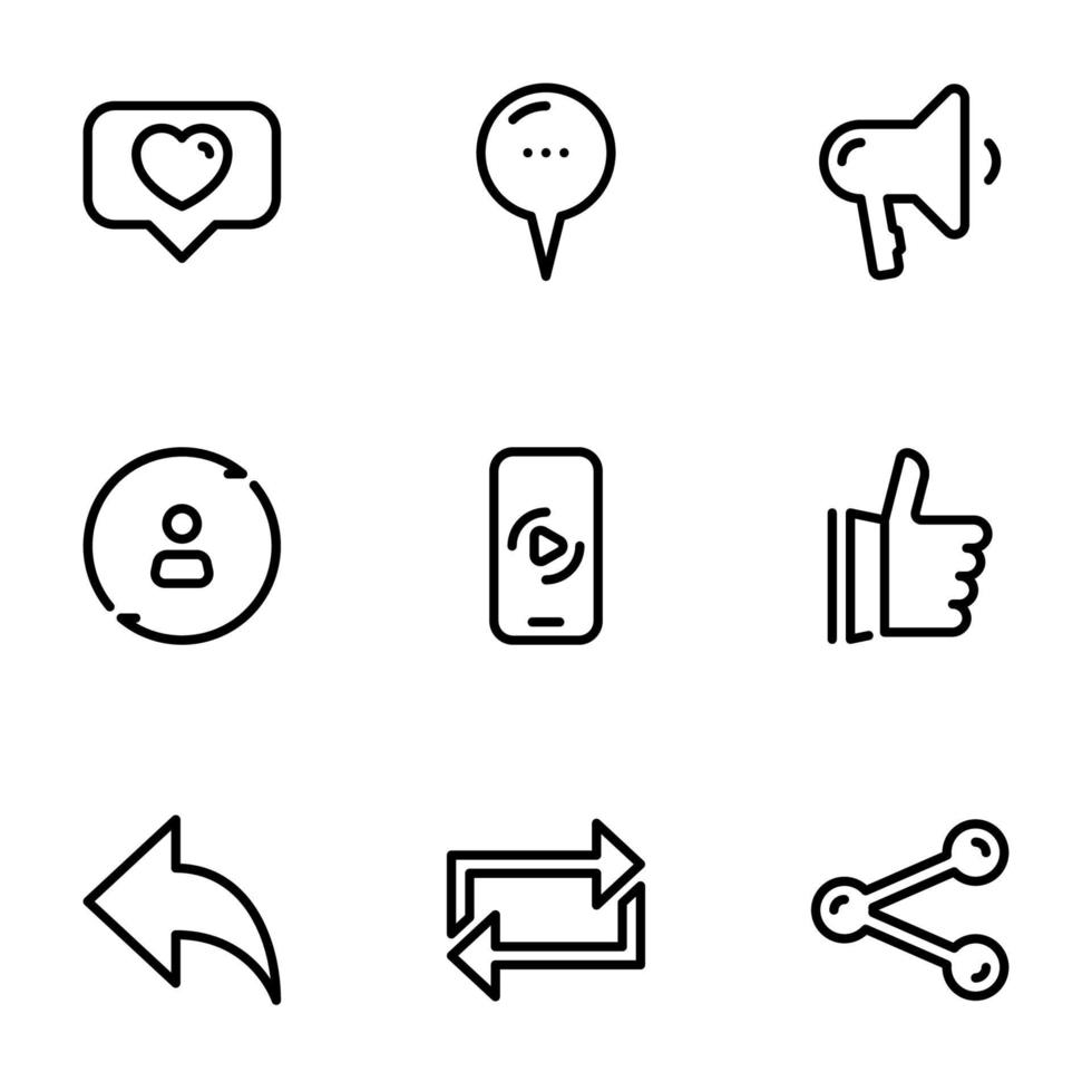 Set of black vector icons, isolated on white background, on theme Internet user interaction Pro Vector