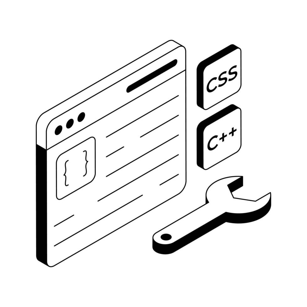 An isometric outline icon fixing code effortlessly. Pro Vector