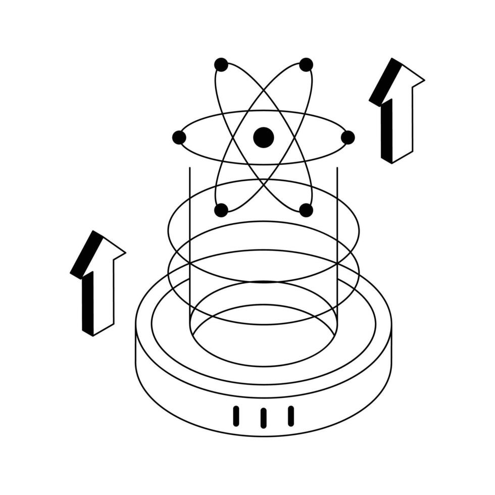 A premium isometric icon representing quantum computing tech. Pro Vector