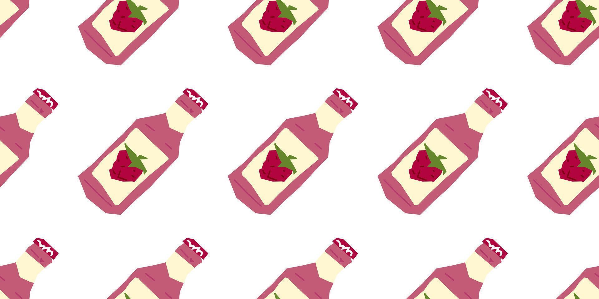 Seamless Raspberry Juice Bottle Pattern Pro Vector