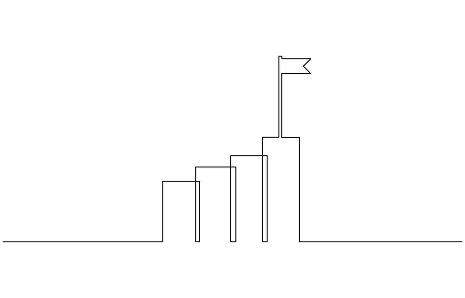 Continuous line drawing of graph icon business. Arrow up with a flag, Increasing business graph data. Growing graph in continuous one line drawing style. Pro Vector