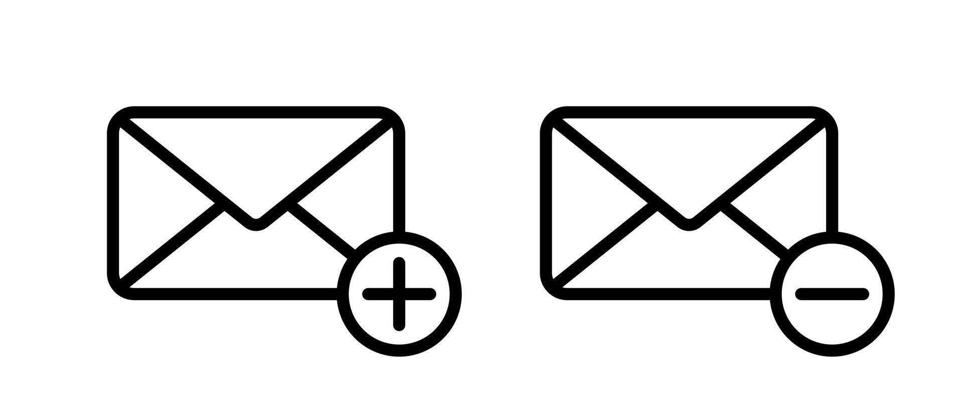 Add and remove envelope message, email outline icon. Create and delete mail sign symbol Pro Vector