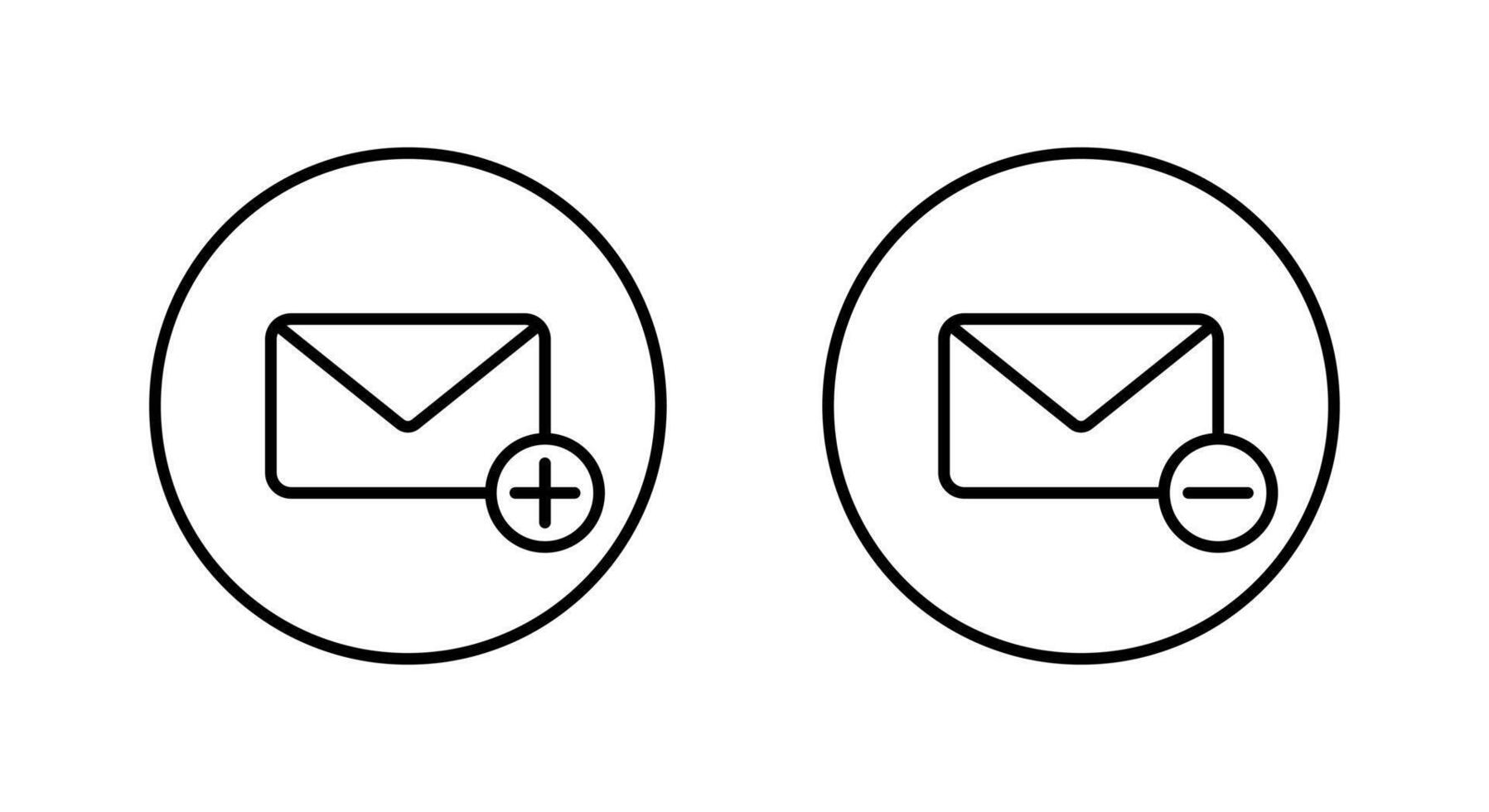 Add and remove message, email outline icon on circle line. Create and delete envelope mail sign symbol Pro Vector