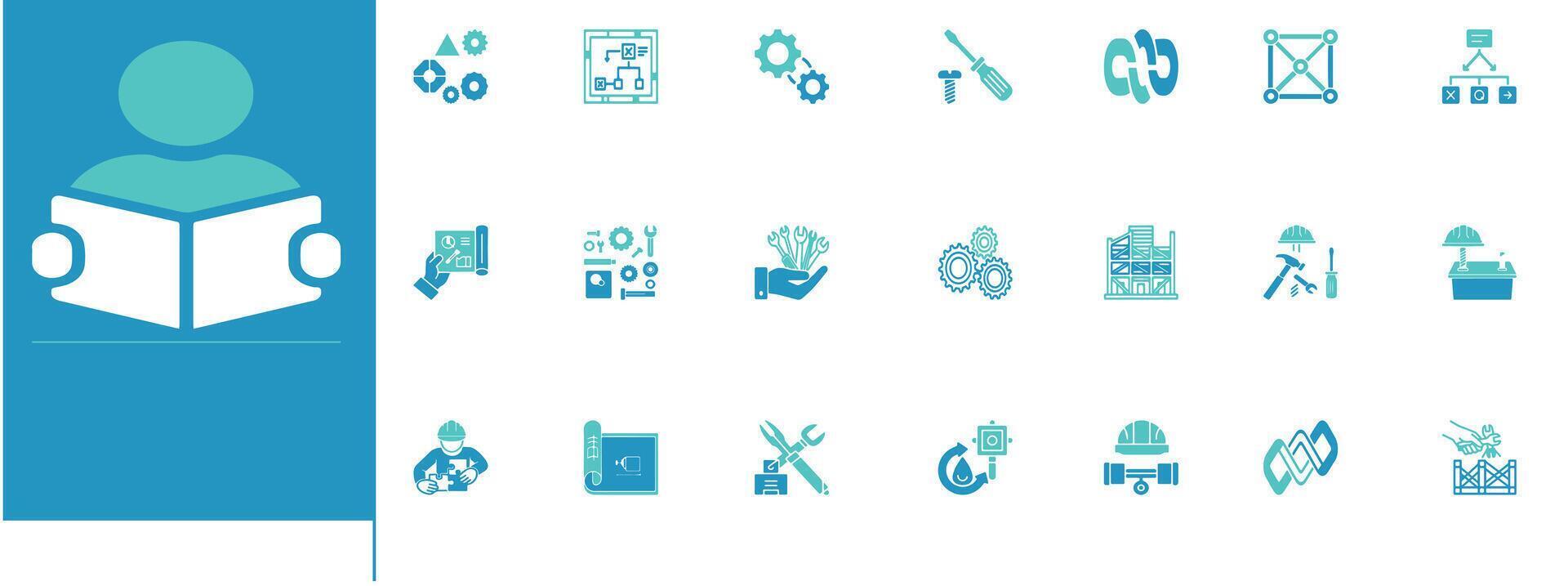Clean assembly icons for industry, automation, tools, and factory visuals Pro Vector