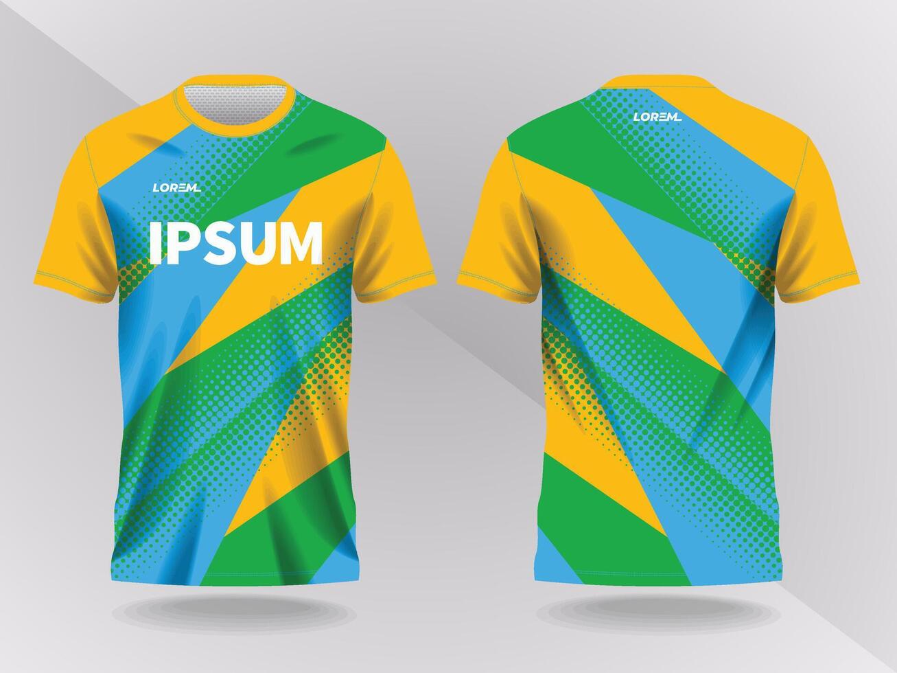 blue green and yellow abstract background and pattern for sport jersey design and mockup. front and back view template Pro Vector