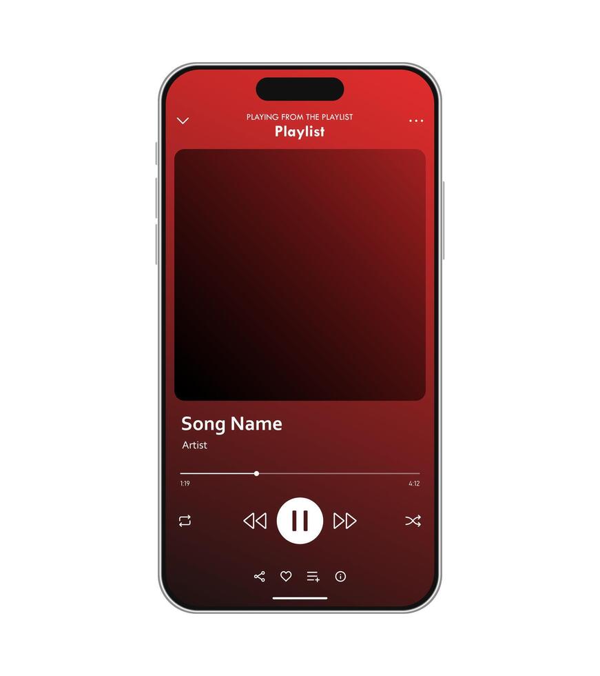 Music player application blank mockup template on a mobile phone user interface layout illustration Pro Vector