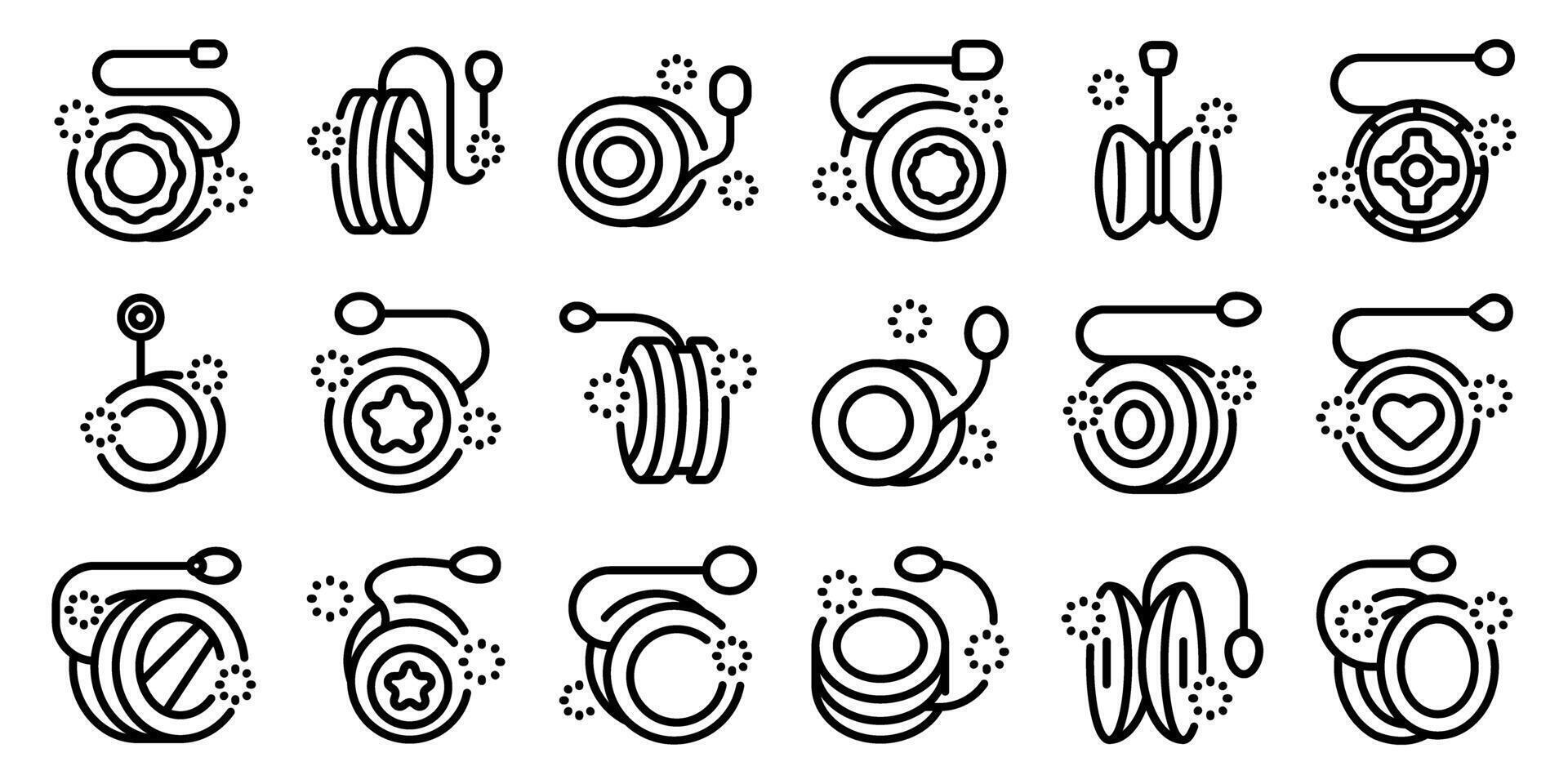 Yoyo toy icons set. Yo yo icons showing different styles and tricks, perfect for representing skill and fun Pro Vector