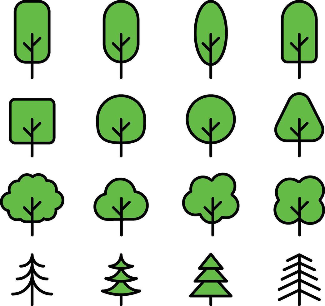 A Set of Tree Solid and Line Icon, Simple Modern Collection for Design, Web Sites, Apps, Cards. Contains Linear Images of Deciduous and Coniferous Trees vector