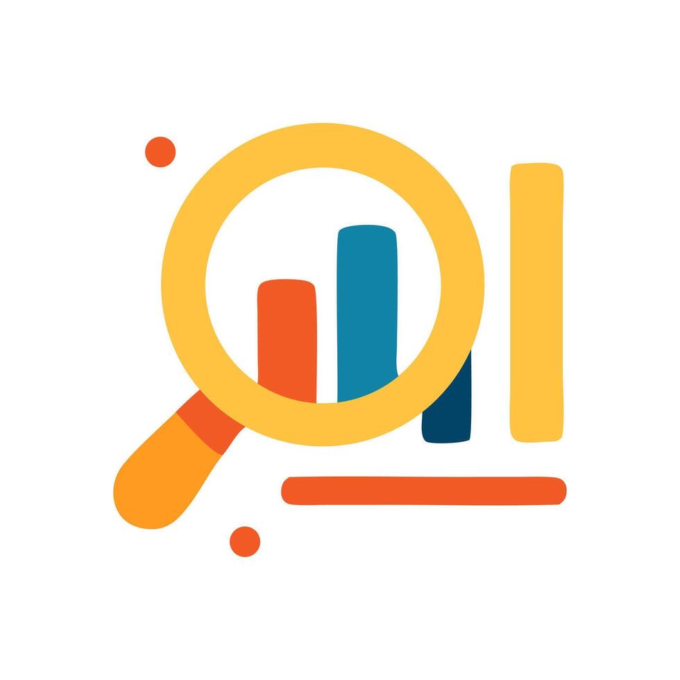 An illustration features a magnifying glass over a bar graph with additional bars and dots surrounding the graph flat design illustration Pro Vector
