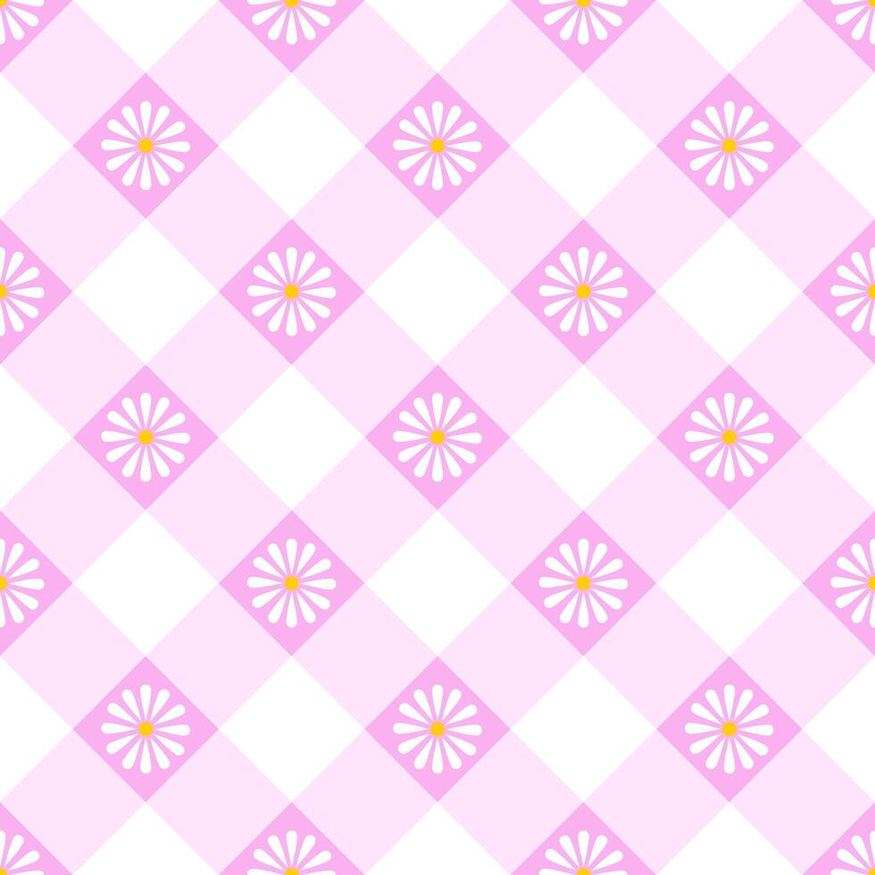 Small daisies arranged in a pink repeating checkered design pattern used in various applications, such as textiles, wallpapers, and digital design. vector