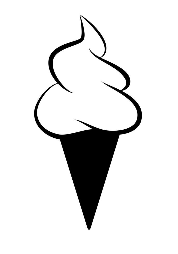 ice cream - black and white symbol of soft serve ice cream in a cone, simple illustration isolated on white background Pro Vector