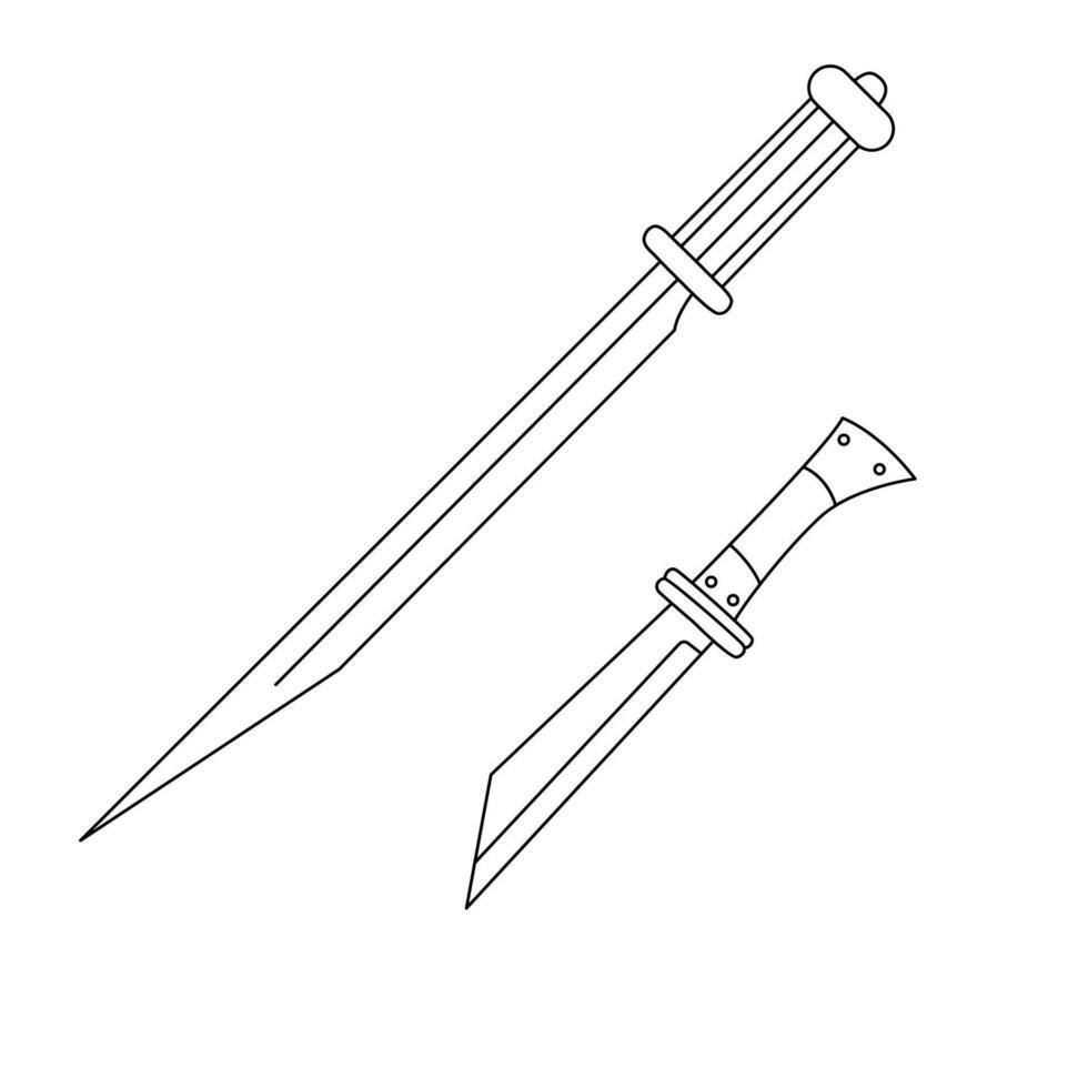 Black outline drawing of two historical seax swords, including a long seax and a shorter broken-back seax Pro Vector