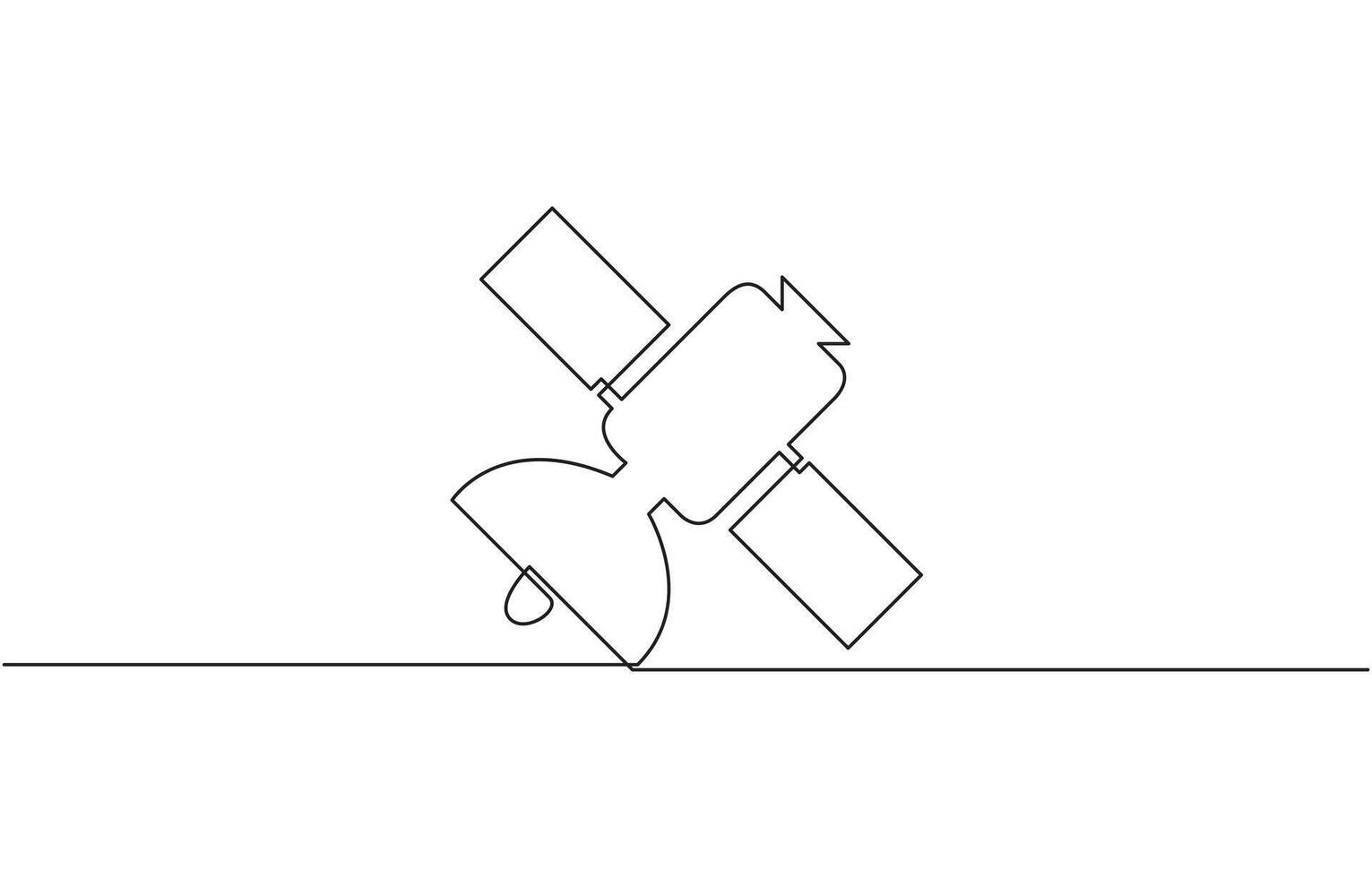 Continuous one line drawing of Satellite in the outer space. Outer Space Satellite one line abstract drawing. Simple hand drawn editable illustration. Pro Vector