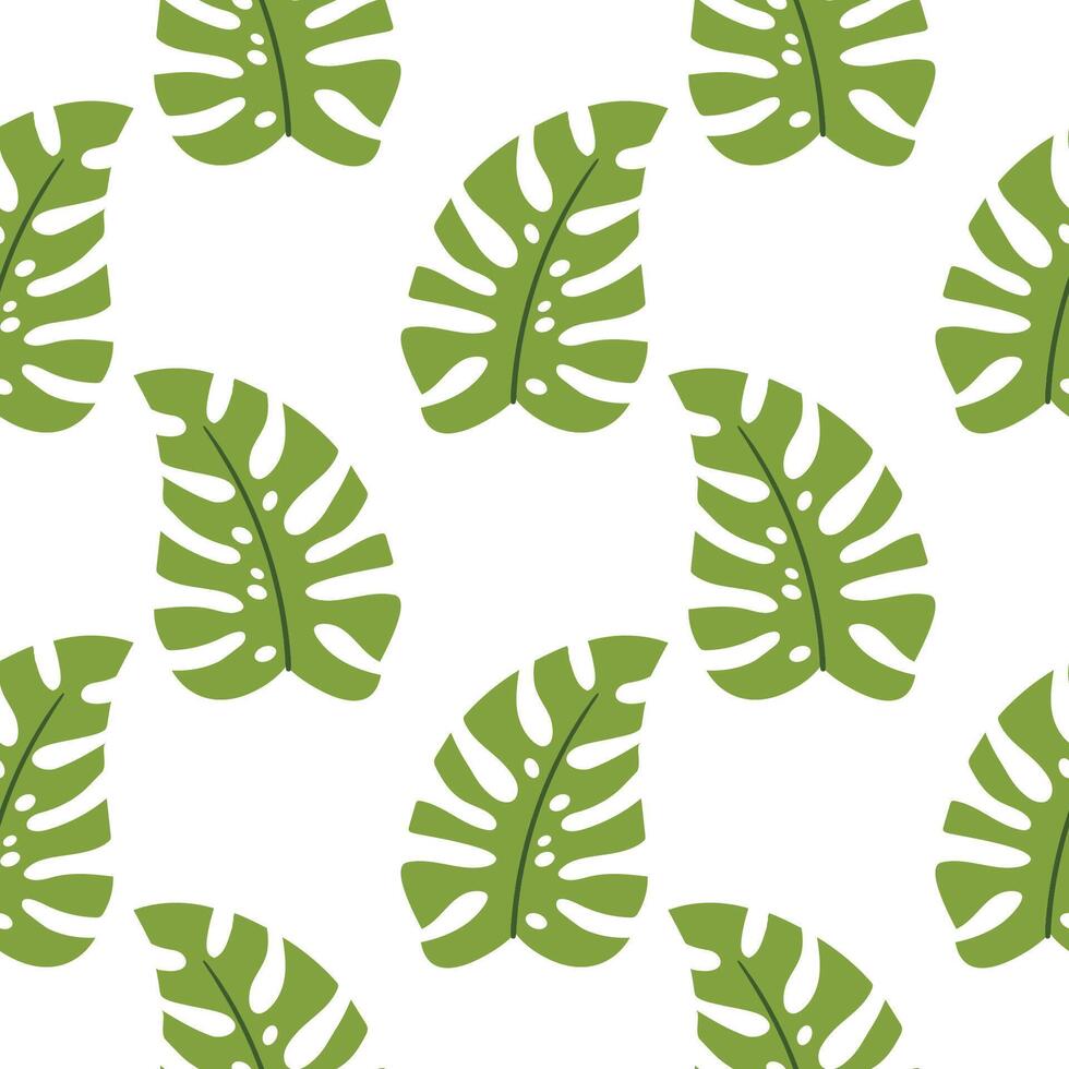 Seamless pattern with monstera leaf in cartoon flat style, arranged in polka dot order on light background. Pro Vector