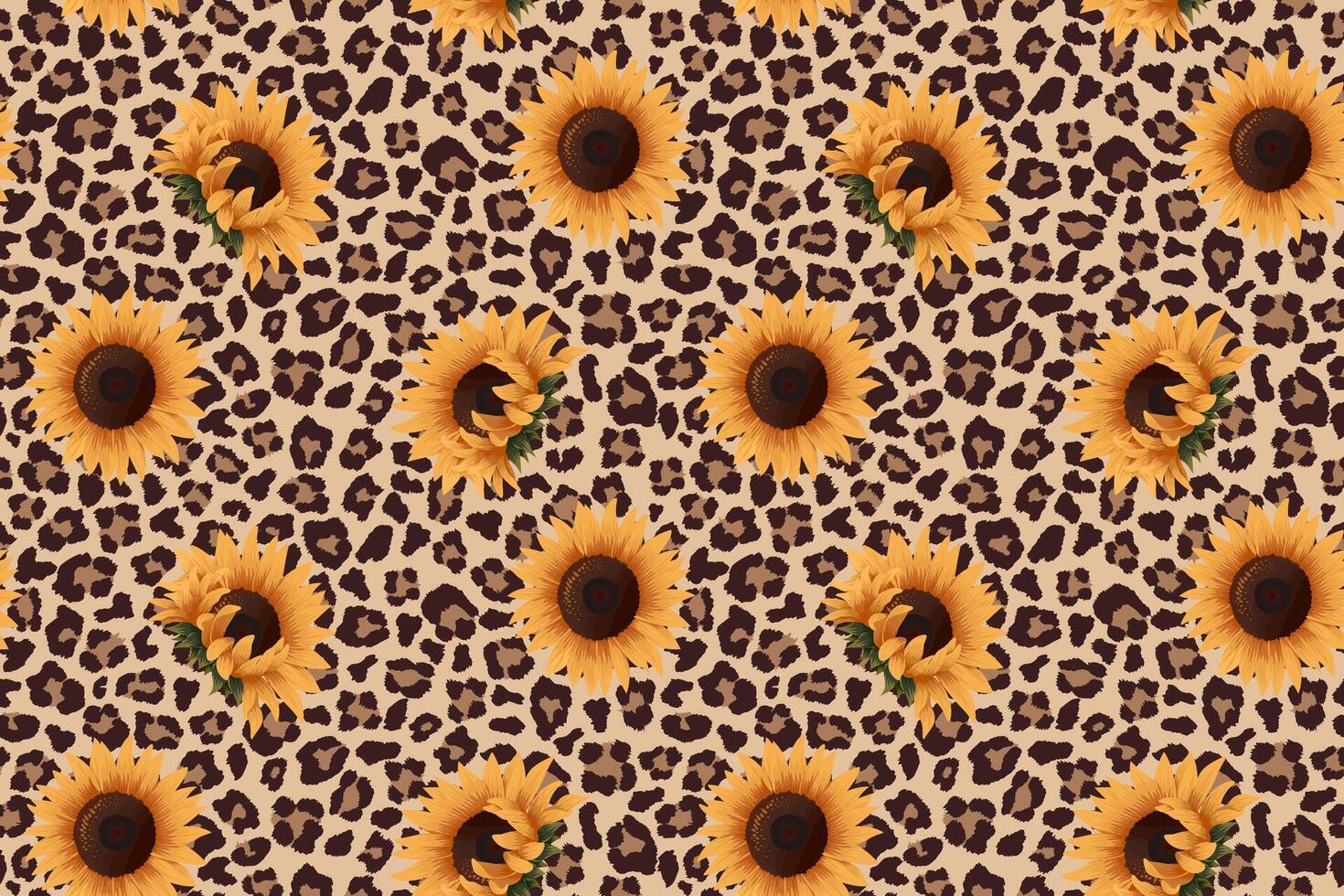 Abstract leopard print with sunflowers seamless pattern for background fabric banner Pro Vector