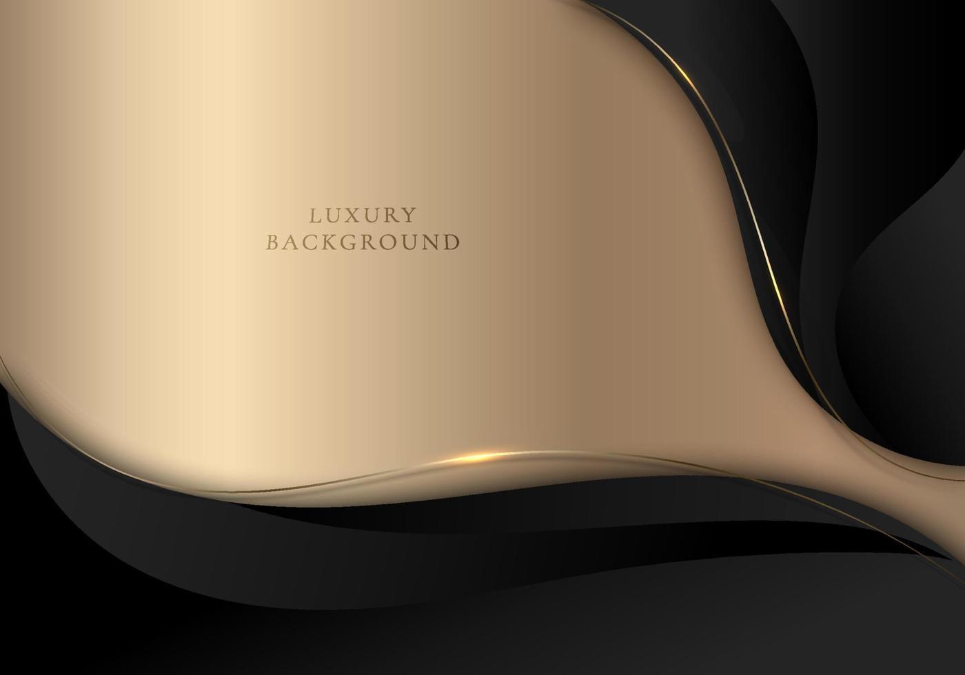 Abstract elegant 3D black wave shapes and golden curved line elements with lighting effect on gold background Pro Vector
