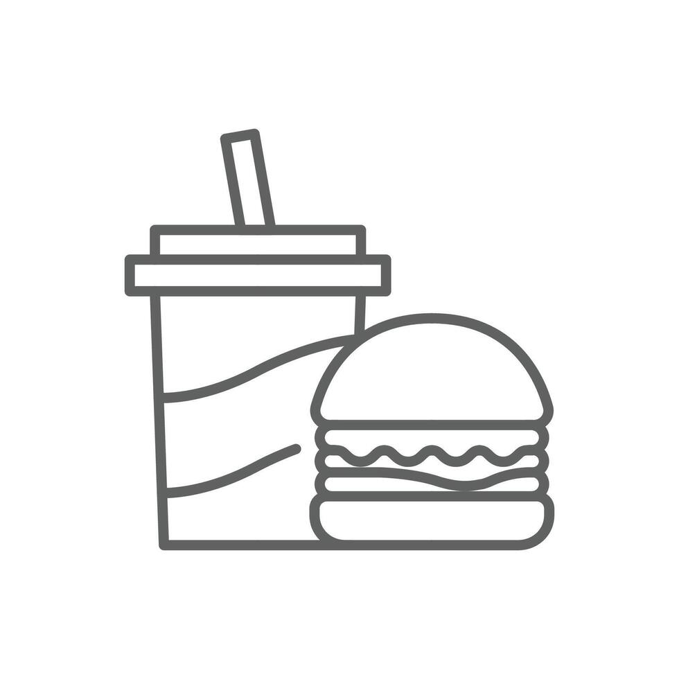 Fast Food Combo Icon Thin Line Editable Stroke Outline Style with Burger and Beverage for Cafe or Snack Bar Pro Vector