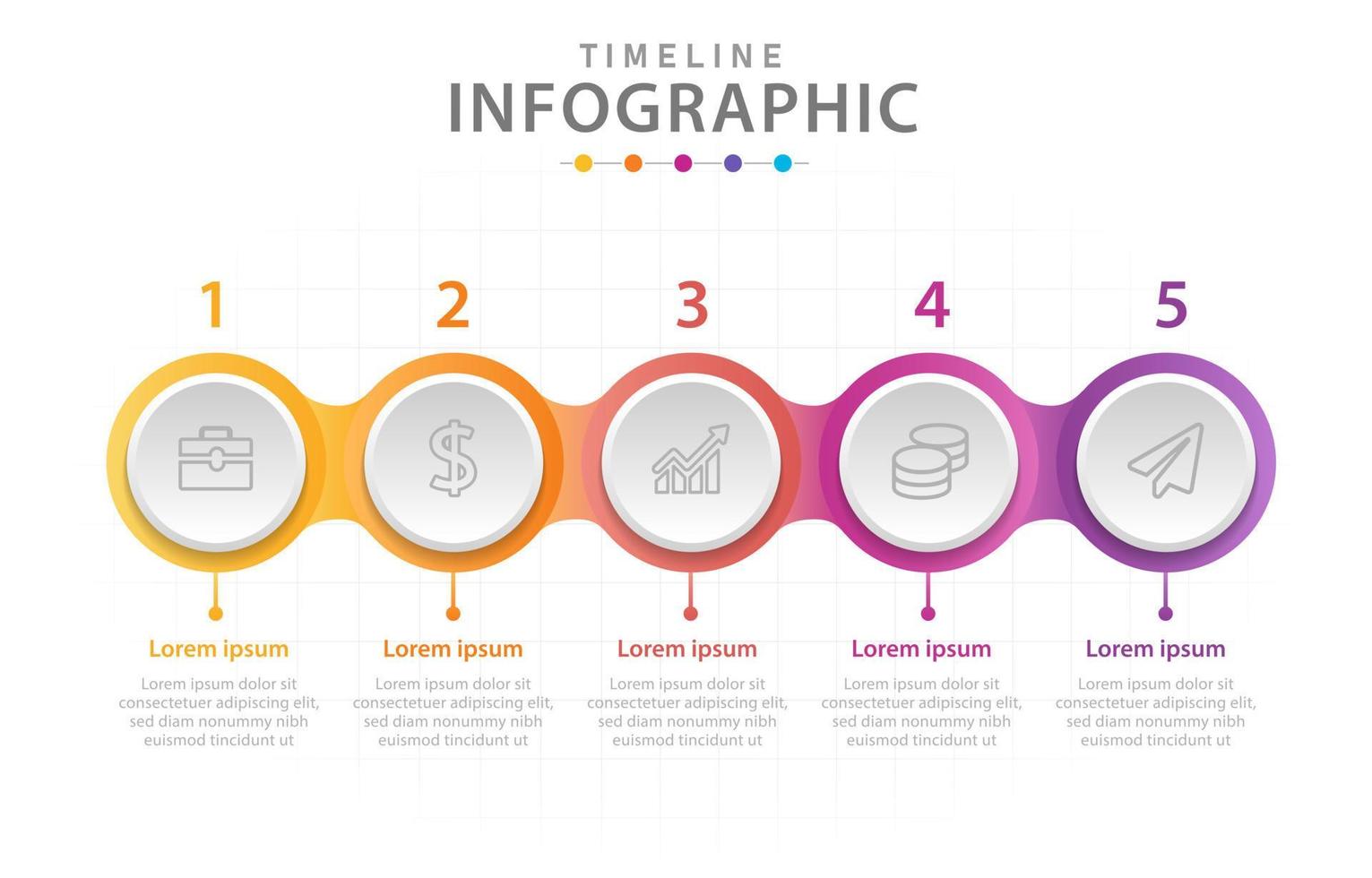 Infographic template for business. 5 Steps Timeline diagram with circles, presentation vector infographic. Pro Vector
