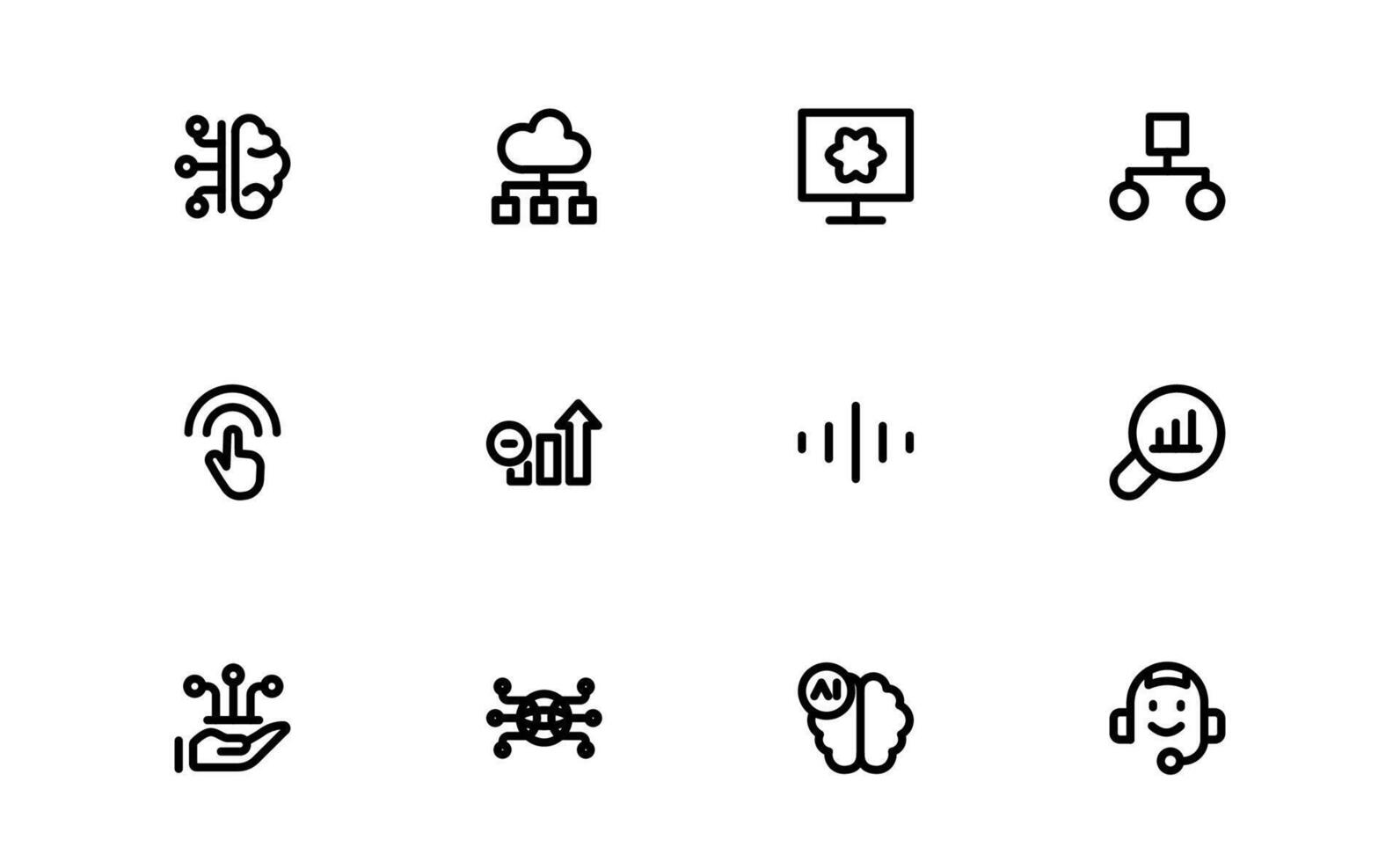 AI and Networking Icon pack set. High-Quality Illustrations for Machine Learning, Cloud Networking, Data Security, and UI-UX Design Solutions Pro Vector