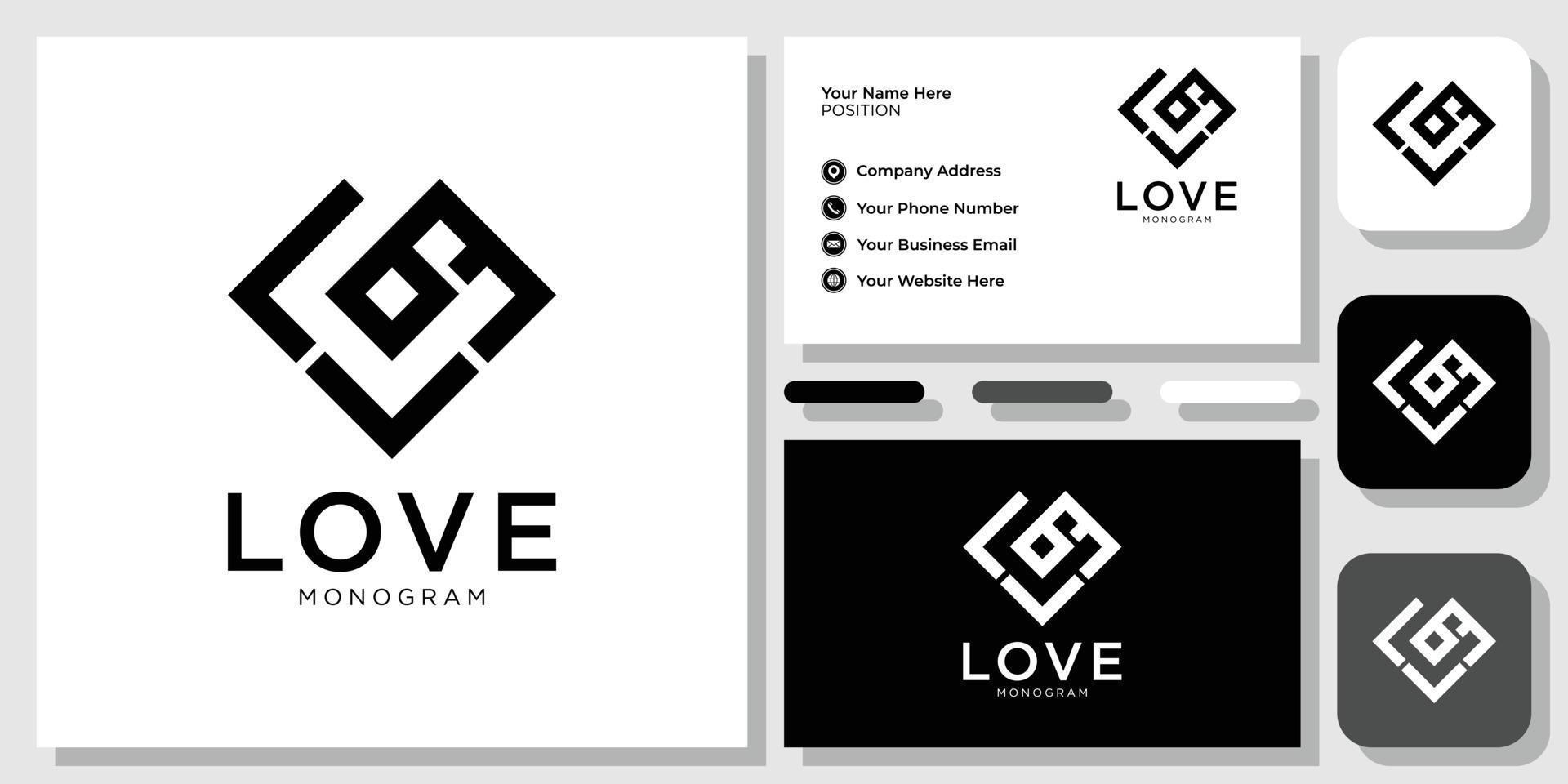love abstract combination initials letters heart shape with business card template Pro Vector